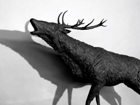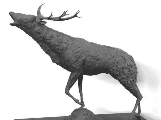 Charles has captured the emotion in this amazing bellowing stag, bringing his call alive whilst he’s just standing there – inspired by the local rutting season around the studio next to a national trust estate. Each bronze sculpture by Charles Elliott is handcrafted using the ancient lost wax casting method—a meticulous and time-honoured process that begins with a pencil sketch and a clay master, sculpted entirely by eye. Over several weeks, Charles refines the form in clay before creating a detailed silicone mould. A wax version is then made and coated in ceramic, which is kiln-fired to leave a hollow shell. Molten bronze is poured in at over 1,100°C, capturing every fine detail. Once cooled, the ceramic shell is broken away, and the bronze is sandblasted, hand-polished, and finished with rich patinas like dark bronze or verdigris. The final piece is sealed with wax for lasting protection.