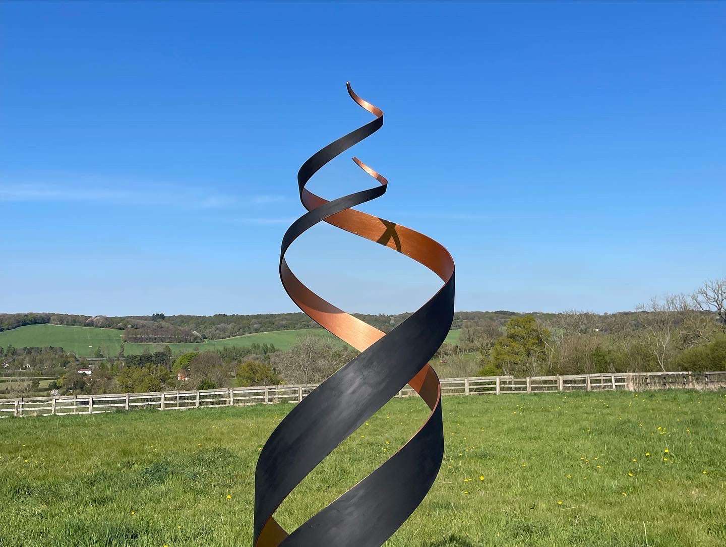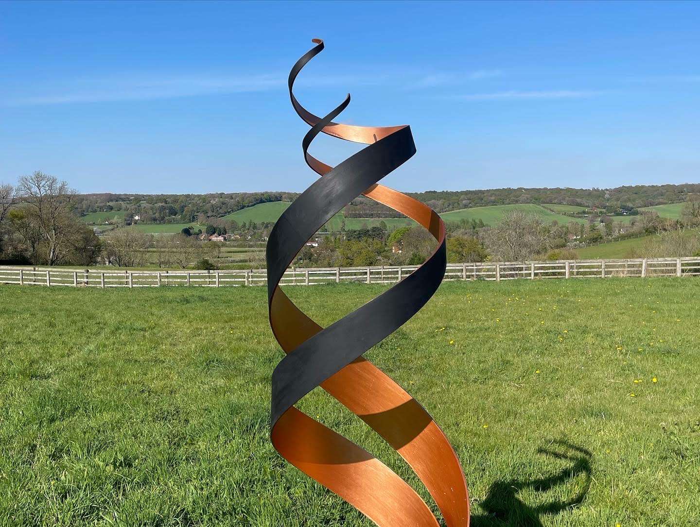 The now two corkscrew pieces will need to be placed together carefully to get the best overall view. They are then positioned upon their base which will eventually be hidden once installed. Once entire, the spiral will undergo a sand blasting process to ensure an immaculate end article no matter which finish is chosen. For all of our spirals we offer the finish of the luxurious rustic patina,adding that stunning orangey toned finish or another option is our hot zinc galvanise finished, giving not only the longevity due to the process but providing a life long stunning silvery grey effect. The Spirals are even available in a selection of carefully selected hand painted finishes, which include our traditional verdigris & gold and the modern popular matte black & copper.