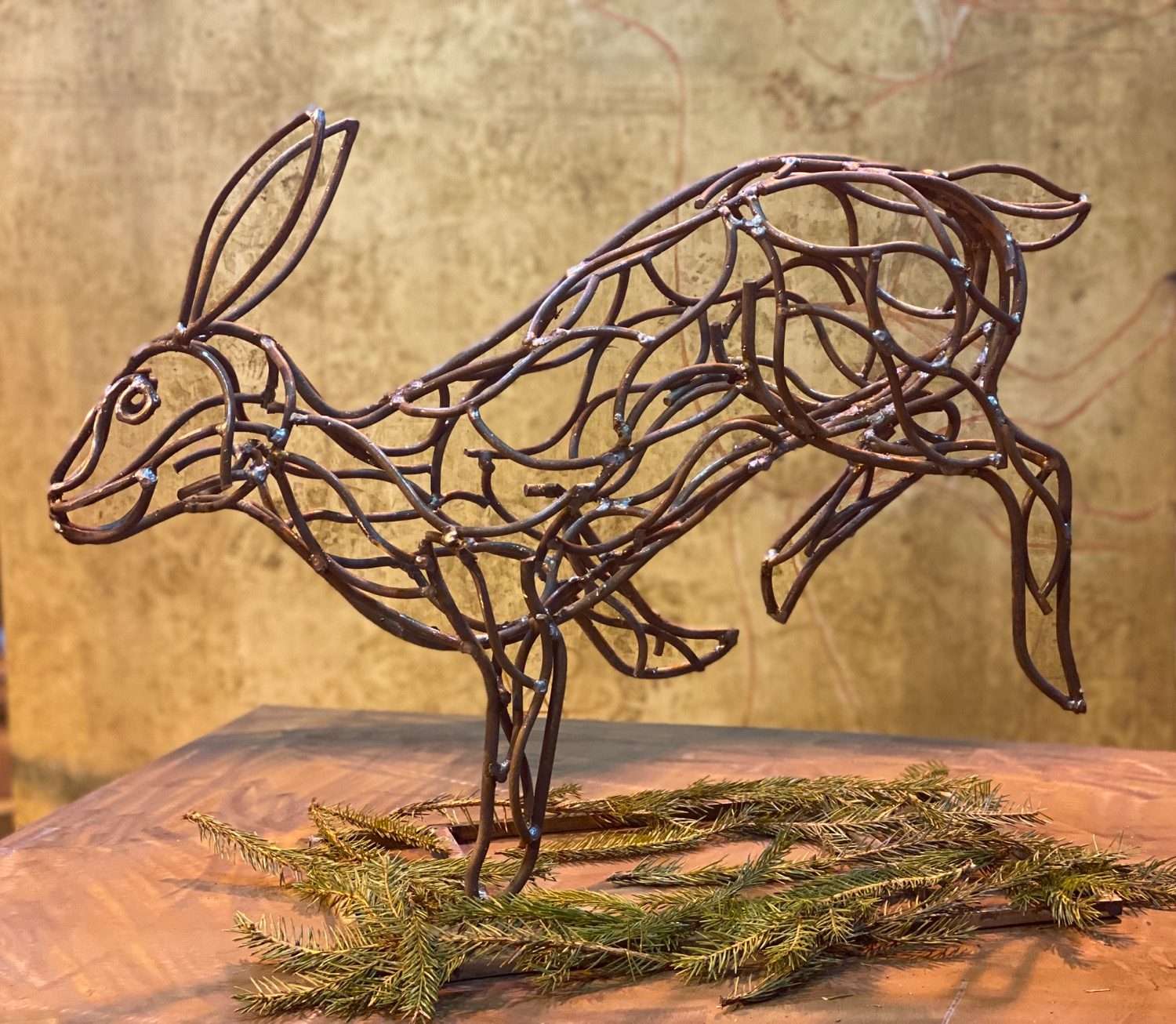 Next, smaller 6mm or 8mm mild steel bars are hand-bent and cut to create muscle definition, depth, movement, and character. This is truly when the sculpture comes to life — as Charles and the team infill the body structure, limbs, facial features, and extraordinary muscle details, crafting each one-of-a-kind piece. The finer details — including the tail, nose, ears, and even the feet — are then handcrafted, often using some of the oldest blacksmithing techniques. Tools like the 1920s power hammer, forge, and anvil add a unique magic to every sculpture.