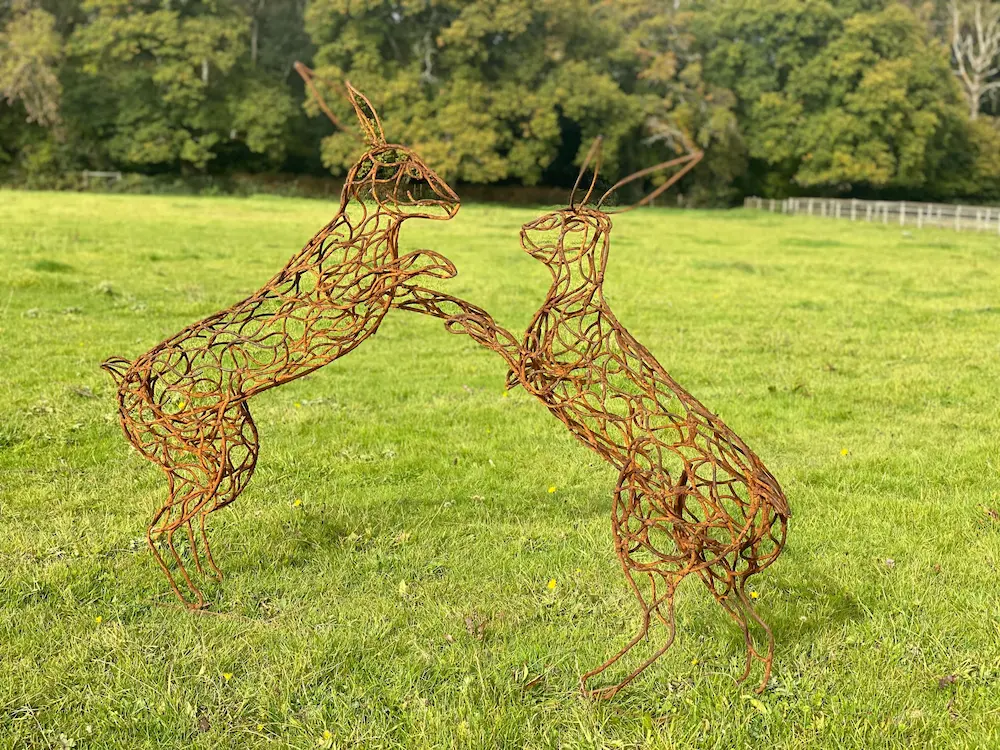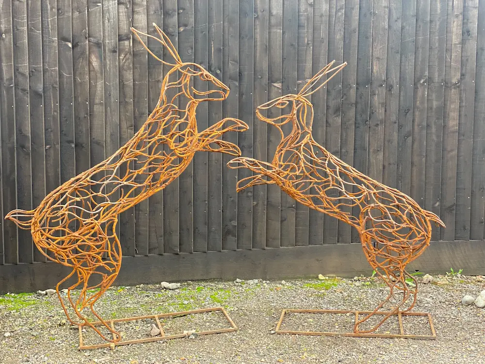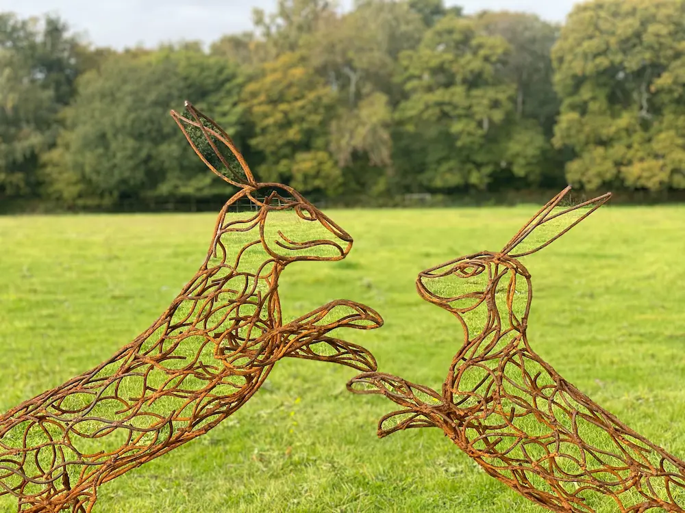 Capturing the untamed energy and elegance of the British countryside, our Hare Sculpture is a celebration of movement, nature, and traditional craftsmanship. Hand-forged in mild steel, each sculpture reflects the alert stance and powerful limbs of this iconic animal—frozen in a moment of stillness or mid-leap. Whether displayed as a solitary feature or paired as boxing hares, it brings a sense of life and storytelling to gardens, parkland, and rural estates. Available in rustic or galvanised finishes, this sculpture is built to stand proudly for generations — a timeless tribute to wild beauty.