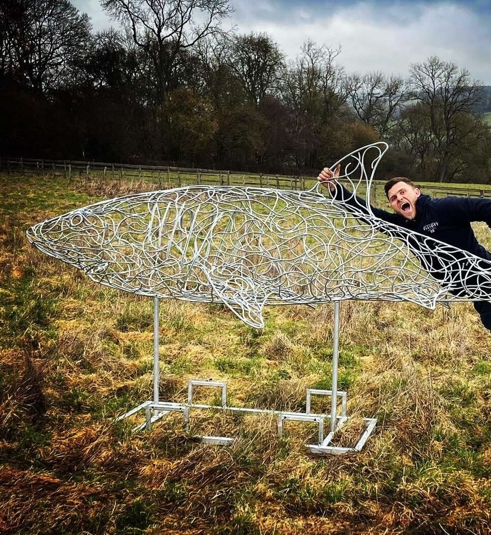 Once happy, the outline of the sculpture will then start to be hand bent using 8mm or 10mm mild steel bar, ensuring all the curves of the outline are correct prior to welding together ready to stand up. The bare line of the sculpture is then stood up, with each leg correctly in place, the body outline can then be seen in its true size. This is the crucial moment where Charles & the team will be able to see any imperfections or complications the sculpture may well throw at them along the way. Each small 6mm or 8mm mild steel bar will be hand bent & cut ready to create the muscle definitions, the depth, the movement & the character of the animal.