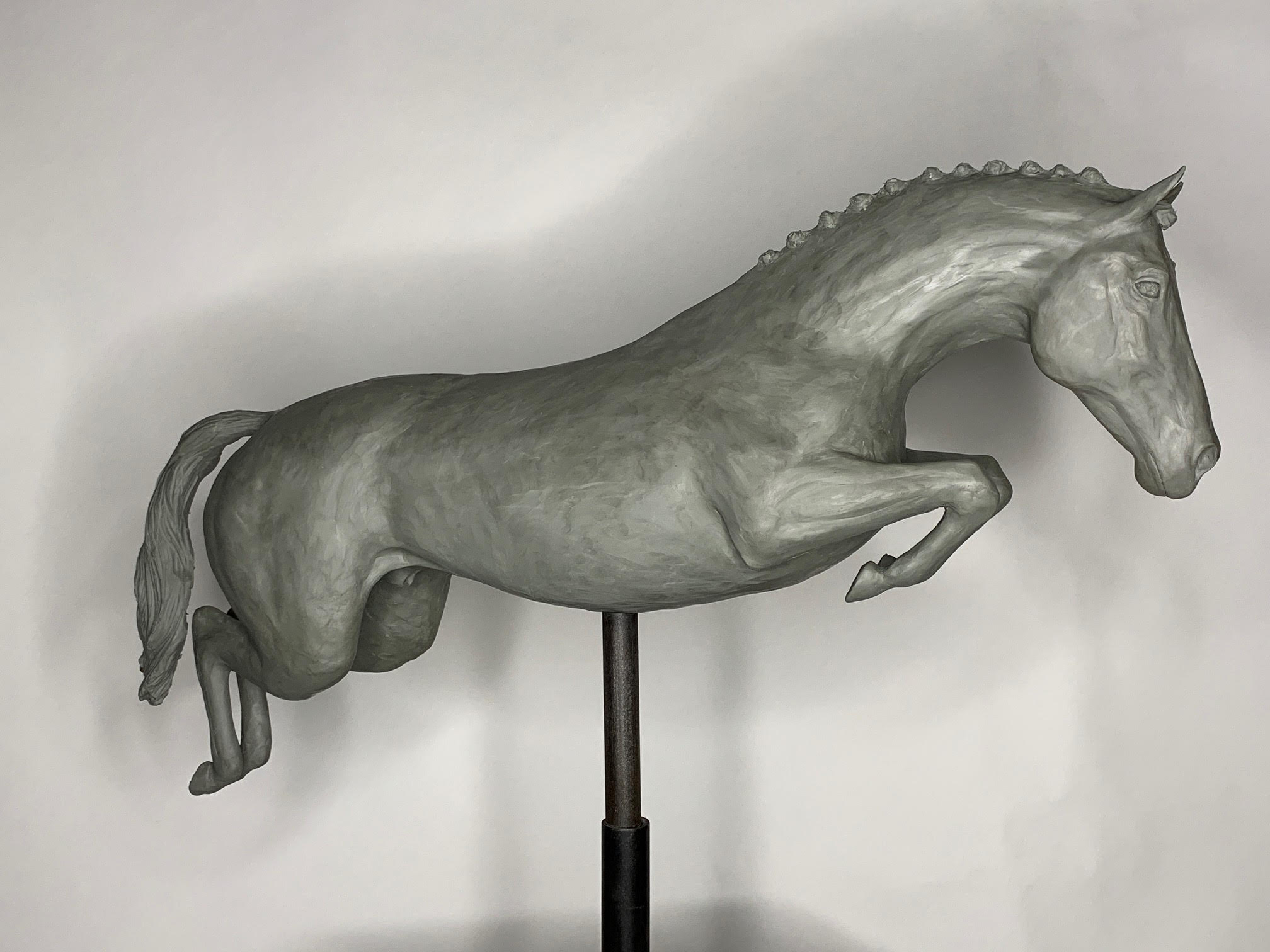 Jumping Horse bronze sculpture by internationally renowned British bronze sculptor Charles Elliott. Created after being inspired by one of the ultimate Olympic Showjumping horses – “Big Star” who was ridden by Nick Skelton – Gold Medalist combination. Each bronze sculpture by Charles Elliott is handcrafted using the ancient lost wax casting method—a meticulous and time-honoured process that begins with a pencil sketch and a clay master, sculpted entirely by eye.