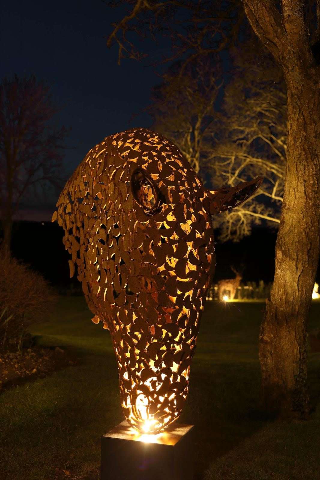One of our favourite equine sculptures, the variety of styles and finishes we offer are endless — and they are available in a range of sizes to suit any space! Handcrafted piece by piece from mild steel moon-shaped pieces, finished in one of our favourite finishes — the Rustic Patina, which radiates nature’s colours. We then mount it onto a black or rustic steel plinth with internal illumination through the horse’s muzzle.