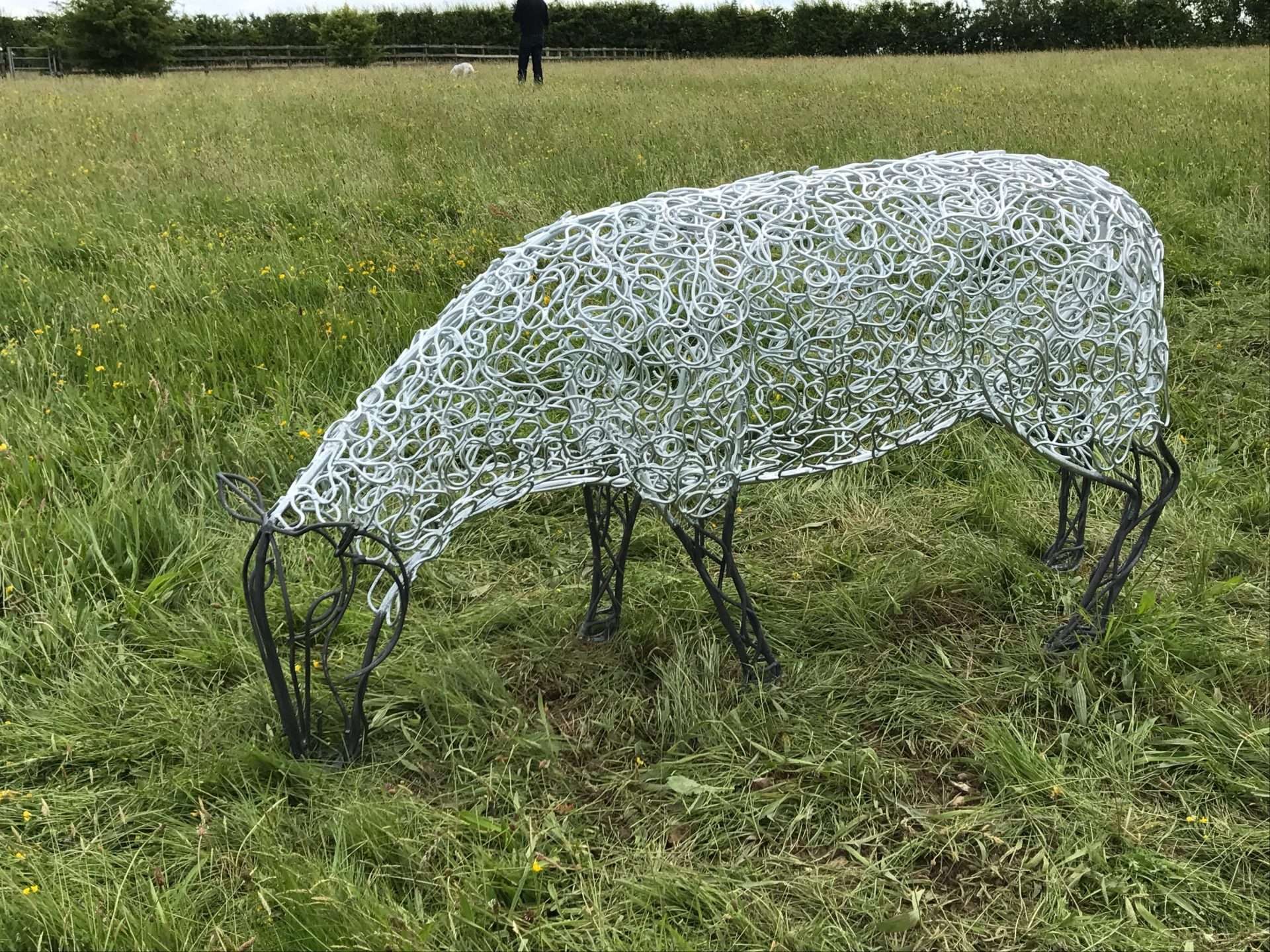Next, smaller 6mm or 8mm mild steel bars are hand-bent into intricate swirls and patterns to build muscle definition, the texture and depth of the fleece coat, and the movement and character of the animal. This stage is where the sculpture truly breathes life. As Charles and his team infill the body structure, limbs, facial features, and exceptional muscle details, each sculpture emerges as a one-of-a-kind work of art. Finally, the finer touches — the tail, small horns, nose, ears, and even the eyes — are hand-crafted using some of the oldest blacksmithing methods.