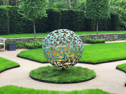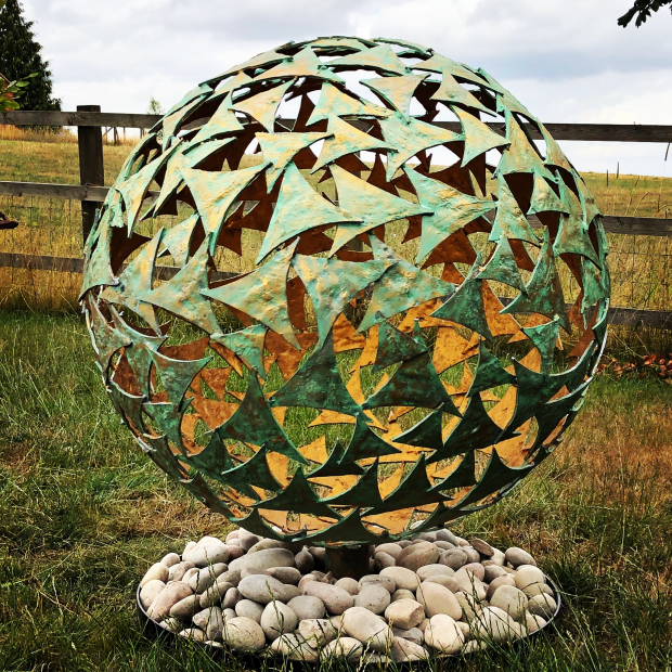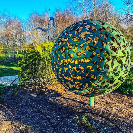 These particular spheres are even available in a selection of carefully selected hand painted finishes, which include our traditional verdigris & gold and the modern popular matte black & copper. We are even able to offer full powder coat colours from the RAL colour chart should you wish to have your own twist on the finishes. With all of the options available above & the option of an array of sizes, patterns & styles make this popular sphere suitable for pretty it makes our spheres a popular choice of pretty much any garden or outdoor space.