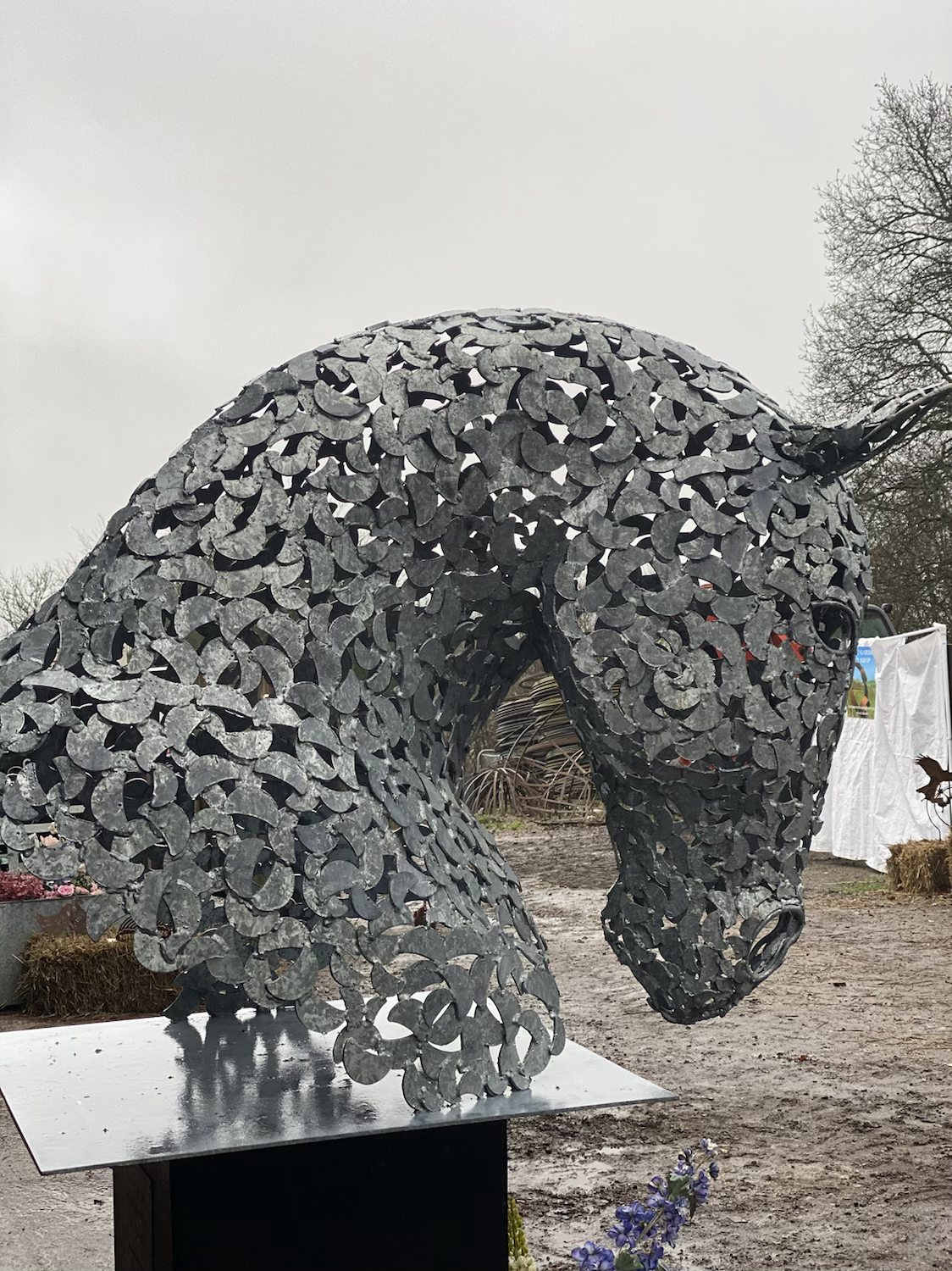 This is the crucial moment where Charles & the team will be able to see any imperfections or complications the sculpture may well throw at them along the way. Each of the 6mm mild steel moon shaped pieces are then cut out then piece by piece & are welded in meticulously as they see correct. Each piece is so carefully placed to create the muscle definitions, the depth, the movement & the character of the horse.