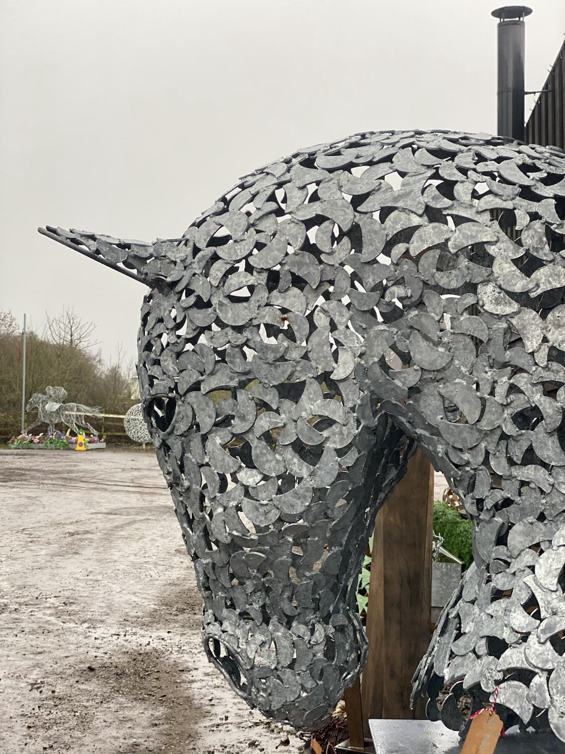 This is truly where the sculpture comes to life; it is one of the most magical processes when creating our animalistic sculptures. We follow this method for both sides of the horse’s head, effectively giving us two half horse head shells – almost life less until they as carefully lifted & welding into place. Once the above is complete, the finer details like the nose, the ears & even the eyes are handcrafted with round mild steel bar – some using some of the oldest blacksmithing methods like our 1920’s power hammer, our forge & the anvil come into play to enhance the magic within the sculptures. Once all the pieces are carefully placed & the finer details are in situ, the horse head sculpture is ready for the finishing process. All of our horse head’s no matter what the end finish is will undergo a full sandblasting process to ensure a smooth immaculate finish.