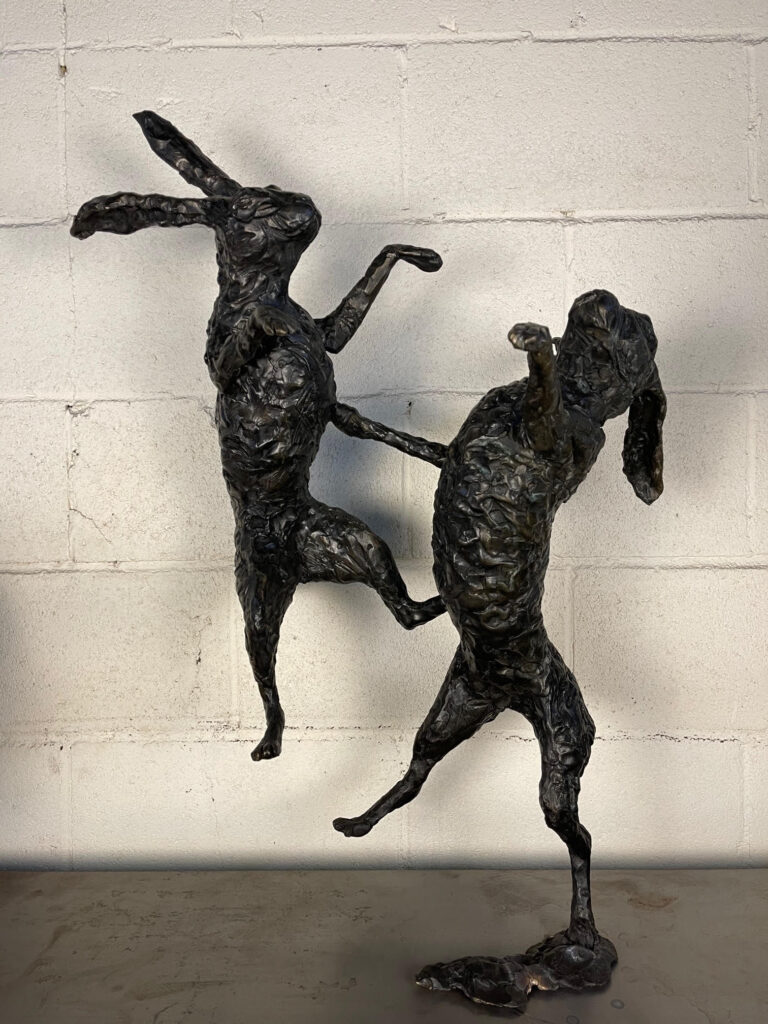 Boxing Hares bronze sculpture by internationally renowned British bronze sculptor Charles Elliott.